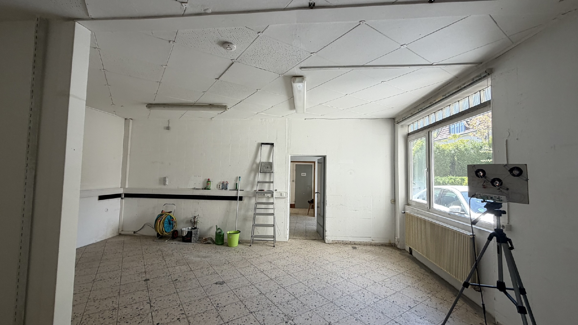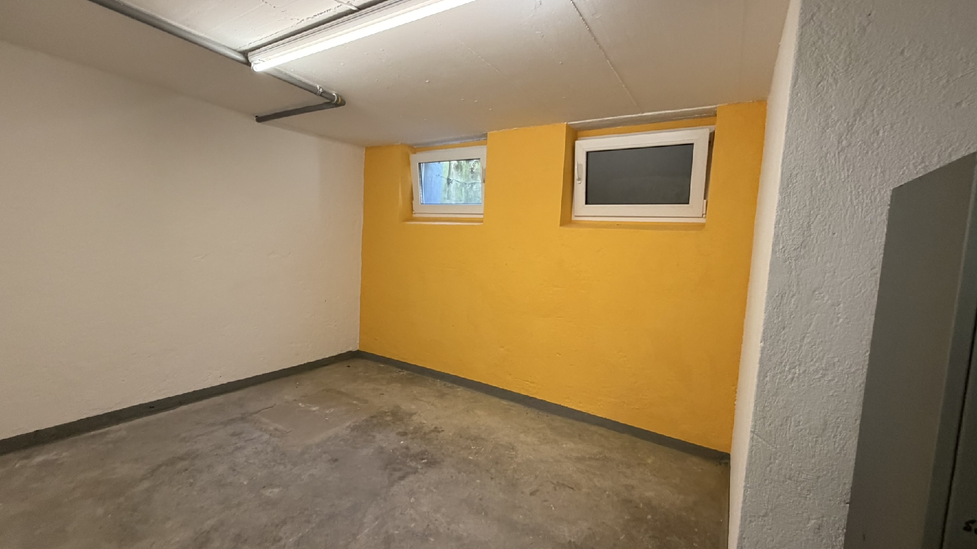 Der großzügige Grundriss umfasst fünf geräumige Zimmer, getrennte Damen- und Herren-WCs sowie eine Küche. Ergänzend stehen im Untergeschoss ca. 95 m² zusätzliche Kellerräume mit umfangreichen Lager- und Abstellmöglichkeiten zur Verfügung.